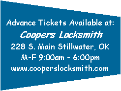 Admission: General $12.00 12 & under free with paid adult Purchase tickets at door or "Coopers Locksmith" |